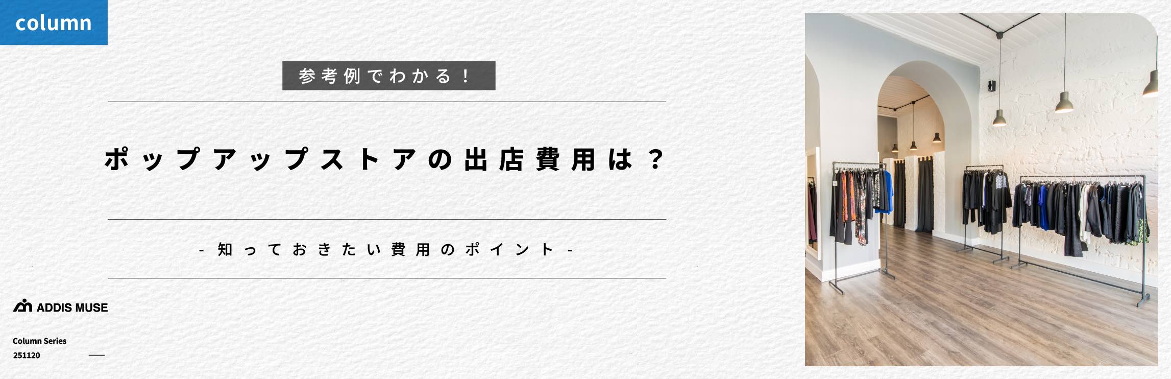 アディスミューズでは、新たにコラムページ「ポップアップストアの出店費用は?–参考例でわかる!知っておきたい費用のポイント–」を公開しました。