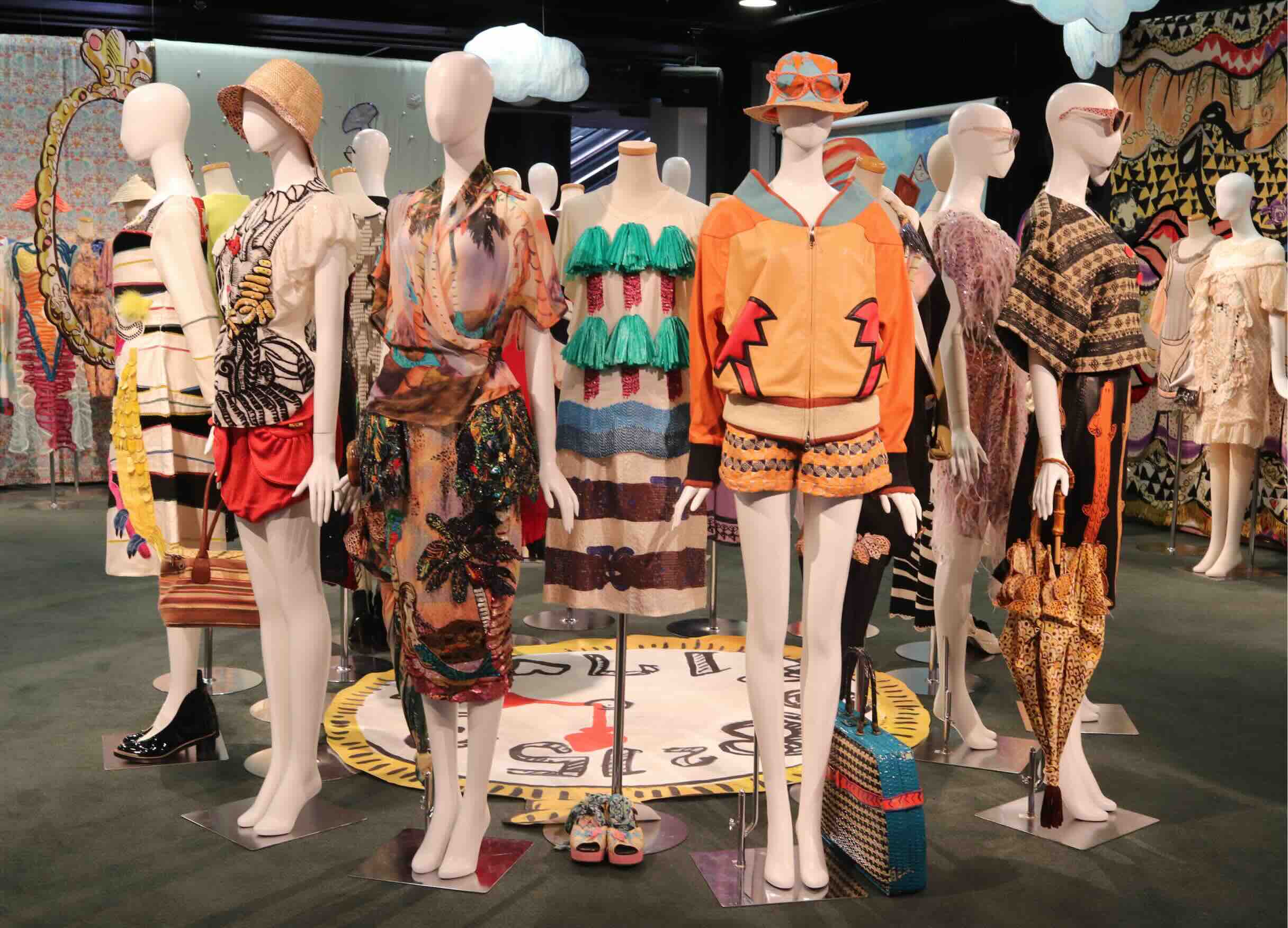 約170体の衣装が並ぶ華やかな展示空間の中で、ブランドの世界観をより印象的に引き立てるマネキン演出を実施。