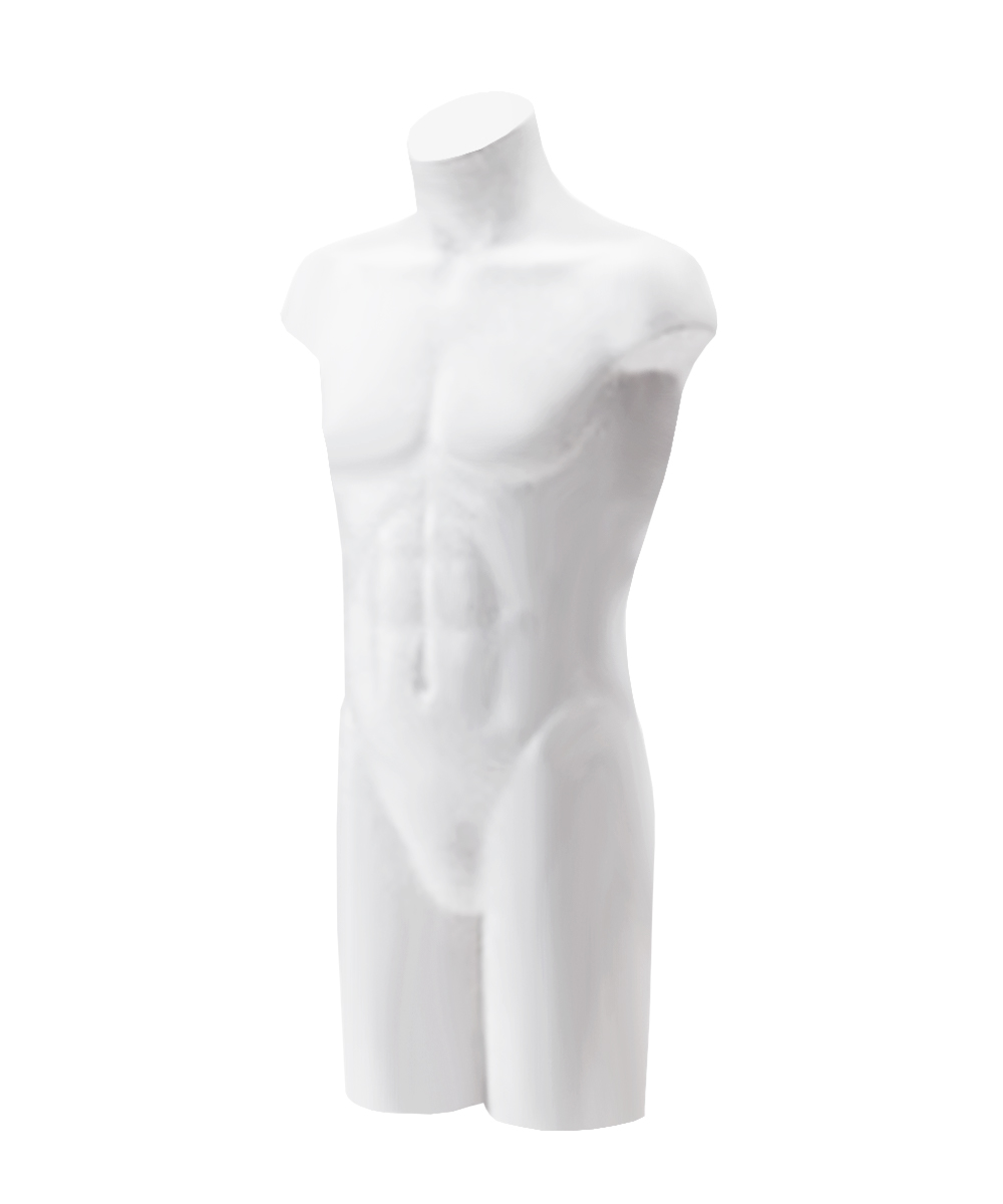 - アパレルやアクセサリーのディスプレイ用メンズ卓上トルソー。店舗、衣装展示、商品撮影など様々なディスプレイ用途で使用可能。シンプルなデザインであり、カジュアルからフォーマルまで幅広く対応します。