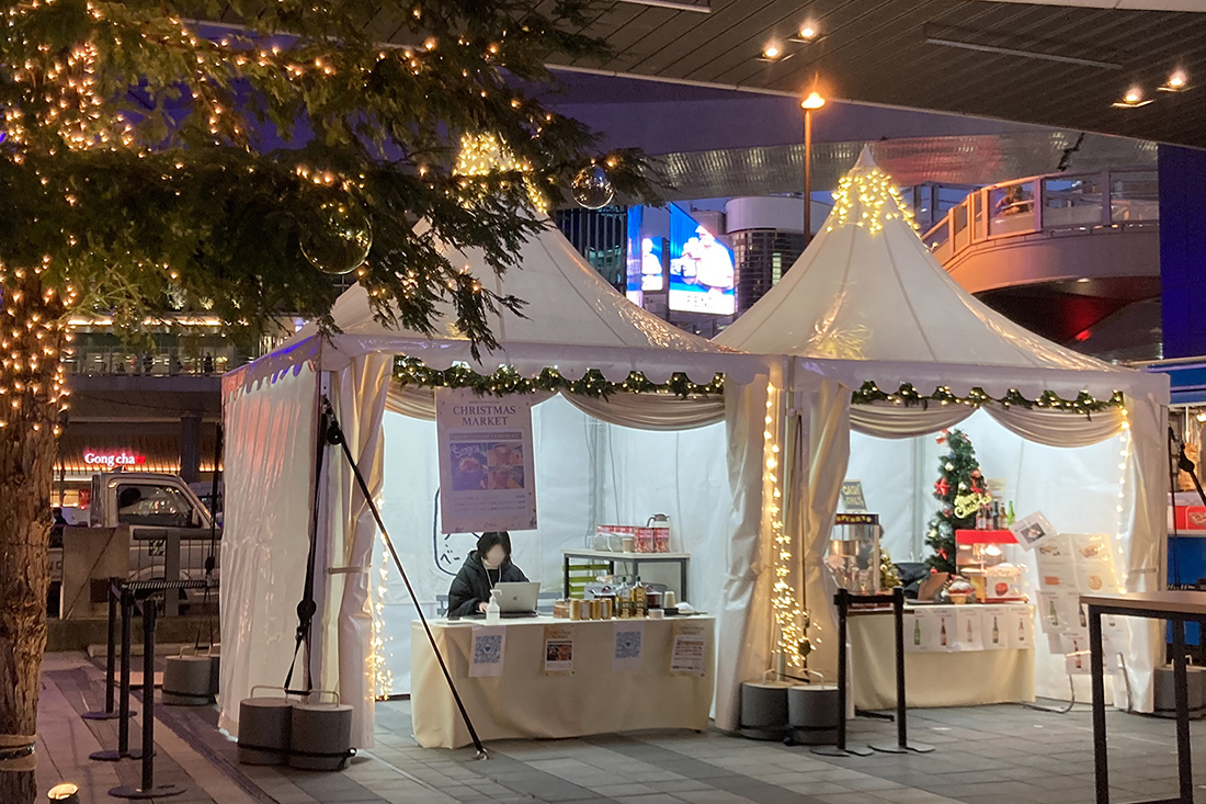 オフィス・店舗・ホテルなどを有する渋谷ストリームの渋谷ストリーム前稲荷橋広場で開催されたクリスマス マーケットで、設営施行 / 装飾デザインを担当いたしました。